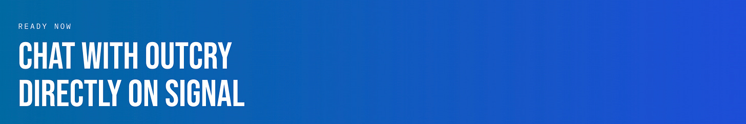 Outcry is now live on Signal. DM it for 1:1 strategy. Add it to group chats for real-time team intelligence. Send it images, PDFs, or voice notes — Outcry now processes all of them. Outcry’s username on Signal is outcryai.62.